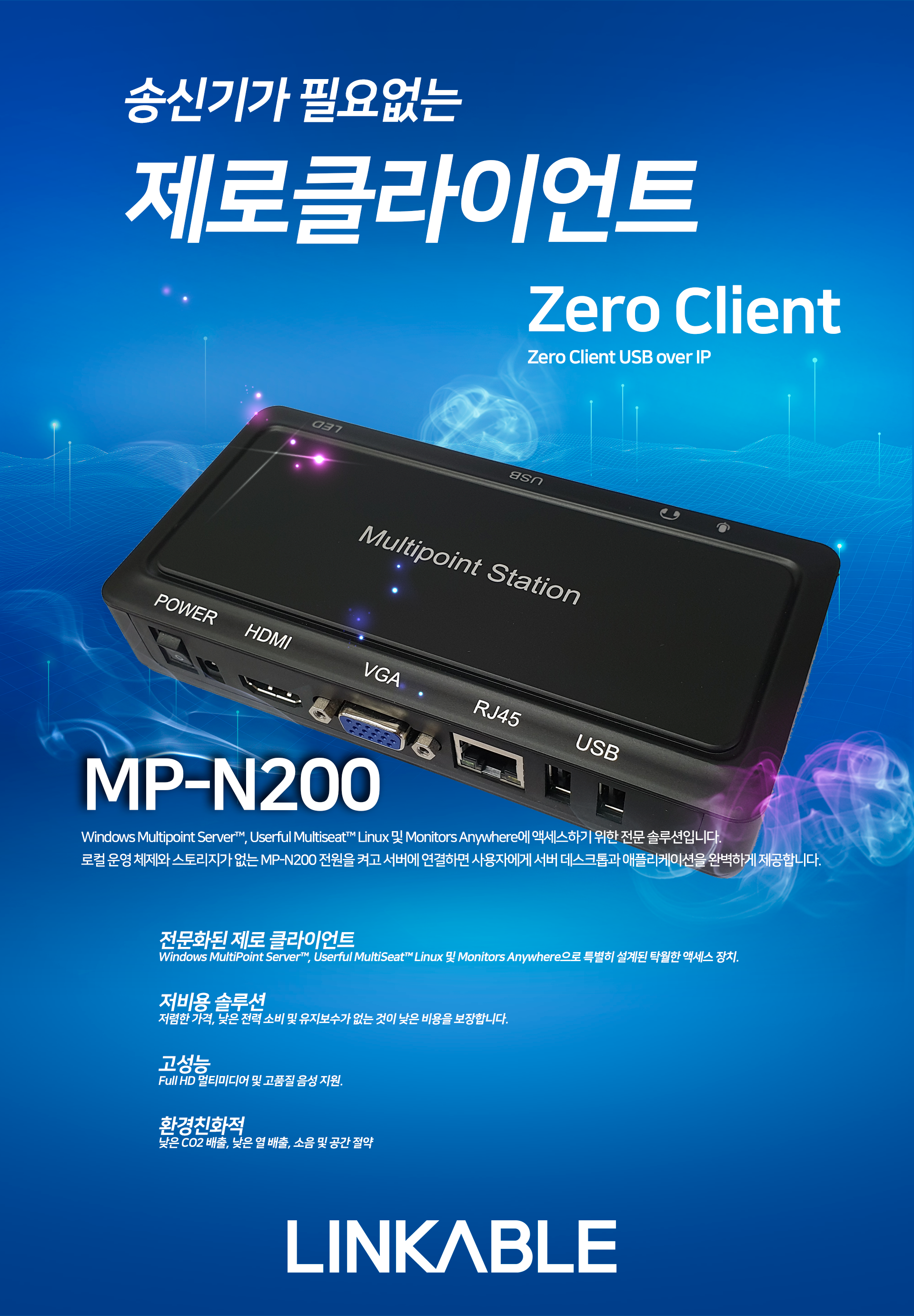 Windows MultiPoint Server™, Userful MultiSeat™ Linux 및 Monitors Anywhere으로 특별히 설계된 탁월한 액세스 장치.